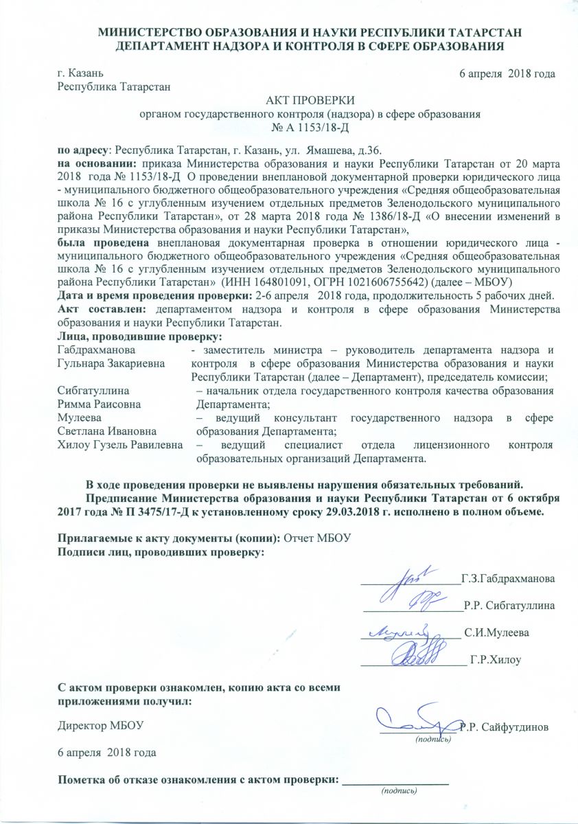 Муниципальное бюджетное общеобразовательное учреждение "Средняя общеобразовательная школа №16 с углубленным изучением отдельных предметов Зеленодольского муниципального района Республики Татарстан"
