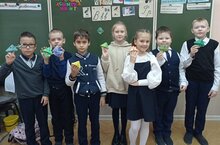 Идрисова Алина, Гуменюк Максим, Эшчанов Айбәк башлангыч мәктәп укучылары белән иҗади чара үткәрделәр. -