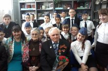 6 нчы майда 4 нче мәктәпнең 5 Б сыйныфы укучылары Милли китапханәдә сугыш һәм тыл ветераннары Хасанов Үзбәк Фатыйхович, Хасанова Әкълимә Низамовна белән очраштылар.Алар үзләренең батырлыклыры турында сөйләделәр.Укучылар аларга үзләрен кызыксындырган сорауларын бирделәр һәм аларны котлап җыр җырладылар.