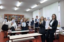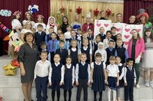 Шарлардан, чәчәкле кәрзиннәр белән бизәлгән фойе, бишенче сыйныф укучылары ясаган язмалар һәм 8 «А» сыйныфы котлаулары, мәктәптә бәйрәм атмосферасы тудырды.