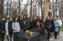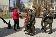 Торжественная линейка у памятника контр-адмирала Дмитрия Дмитриевича Рогачева состоялась в преддверии Дня Победы 1941-1945 для учащихся пятых, шестых классов.