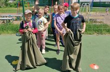 Сегодня в СОШ №4 прошел очень веселый праздник Сабантуй. Праздник начался с концерта детей. Сабантуй продолжился национальными играми, состязаниями. На площадке школы царило оживление, была слышна веселая музыка, повсюду раздавался детский смех. Дети с радостью и азартом приняли участие в играх и развлечениях. Особенно понравились бег в мешках, бег с ложкой с яйцом, перетягивание каната, скачка на игрушечных лошадках, разбивание горшка. Самые ловкие, сильные ребята получили подарки./ Бүген 4нче мәктәптә татар халкының милли бәйрәме Сабантуй узды. Бәйрәм матур концерт белән башланып китте. Аннары мәйданда милли уеннар дәвам итте. Балаларга капчык киеп йөгерү, кашыкка йомырка куеп чабышу, аркан тартышу, уенчык атларда узышу, чүлмәк вату аеруча ошады. Алар, берсен-берсе уздырып, ярышларда катнаштылар, көч сынаштылар. Һәр катнашучы бүләкләр һәм күчтәнәчләр алды. Сабантуй – иң күңелле бәйрәм!