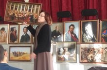 В актовом зале школы для учеников была организована выставка картин И.Е.Репина . Председатель культурно- выставочного зала "Радуга" рассказала о жизни Ильи Ефимовича, а также познакомила детей с его творчеством