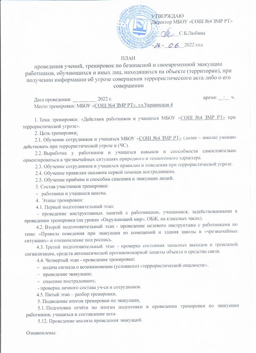 План работы антитеррористической комиссии в ЗМР РТ на 2019 год