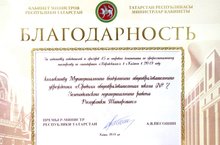 По итогам участия в соревнованиях 45- го мирового чемпионата по профессиональному мастерству по стандартам «Ворлдскиллс» в г. Казани в 2019 году школа отмечена Благодарственным письмом Кабинета Министров Республики Татарстан 07.11.2019