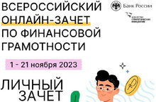С целью оценки уровня финансовых знаний Банк России и Агентство стратегических инициатив с 1 по 21 ноября проводят VI Всероссийский онлайн-зачет по финансовой грамотности. Всероссийский онлайн-зачет по финансовой грамотности (finzachet.ru) 21.11.2023