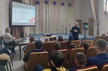 Сегодня учащиеся школы встретились с представителями Российского движения детей и молодежи (РДДМ) "Движение Первых". Калистратова Веста Владимировна познакомила ребят с этим движением.