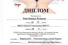 Поздравляем Уметбаеву Ясмину, занявшую 2 место на 13 республиканском конкурсе научно-исследовательских, проектных и творческих работ "Я выбираю село"