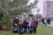 Сегодня учащиеся школы приняли участие в экологической акции, приуроченной Всероссийскому субботнику "Зеленая Россия". Ребята производили санитарную очистку сквера им.Н.Н.Алтынова.