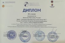 Ученица 9 класса Данилина Виталина приняла участие и заняла 3 место в VII Всероссийской (с международным участием) научной конференции имени Н.И. Лобачевского в секции"Отечественная и зарубежная история". Поздравляем и желаем не останавливаться на достигнутом.