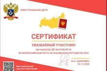 В честь Дня Конституции Российской Федерации общественное движение «Гражданин» проводит Акцию «Всероссийский тест на знание Конституции РФ» в котором принимают участие лица, достигшие 12-ти летнего возраста.