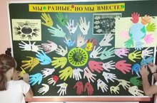 В рамках международного дня толерантности Школьный Парламент провел акцию "Мы разные, но мы вместе".