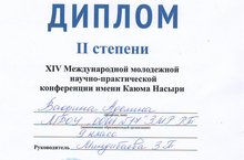 Поздравляем Вафину Аделину, ученицу 9 класса за победу в Х1V Международной молодежной научно-практической конференции имени Каюма Насыри.