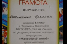 С 28 января по 2 февраля 2014 года в городе Набережные Челны состоялись соревнования по фигурному катанию по программе "II юношеский разряд" , на которых ученик 3 класса Ермолин Максимильян занял 1 место. Поздравляем!