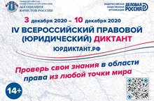 С 3 по 10 декабря 2020 года в онлайн-режиме пройдет IV Всероссийский правовой (юридический) диктант.