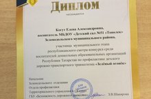 Наш педагог Когут Е.А. приняла участие в муниципальном этапе республиканского смотра-конкурса среди воспитателей дошкольных образовательных организаций Республики Татарстан по профилактике детского дорожно-транспортного травматизма "Зелёный огонёк"