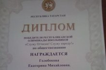 Поздравляем Голобокову Екатерину, победителя Республиканской олимпиады по обществознанию "Служу Отчизне! Служу народу!" 28.11.2018
