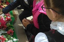 У обелиска "Всем ковавшим победу на фронте и тылу" прошел торжественный митинг для учащихся 2-4 классов. Ребята рассказывали стихи о войне, побед, так же возложили цветы к обелиску