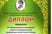 3 февраля учащиеся нашей школы Гарафиева Диляра, Нигматзянова Эндже , приняли активное участие в 15 Международной молодежной научно-исследовательской конференции, и стали Лауреатами( уч. Шекаева Н.Ф). Медведев Егор получил Диплом 3 степени. (Бикмучева Г.А).Так же ученица 9 б класса Нигмазянова Эндже заняла 3 место в конкурсе "Все работы хороши", специальный приз данного конкурса получила Бикмучева Чулпан ученица 9 а класса
