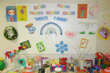 В фойе нашей школы к этому празднику была приурочена выставка творческих работ учащихся школы"ВМЕСТЕ С МАМОЙ"