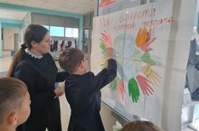 Активисты ДОО "Росток" провели акцию " Мы против террора". Ученики писали на бумажных ладошках ,что для них мир и клеили их на плакат. Суть таких ладошек – напомнить всем, что вместе мы Сила! И объединив усилия, люди планеты смогут противостоять терроризму, защитить жизни и сохранить Мир на земле.
