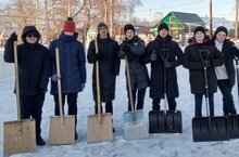 Сегодня Юнармейцы провели акцию "Снежный десант"- по очистке снега на будущем катке.