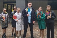 Ребята раздавали ладошки с пожеланиями,говорили приятные слова,поднимали настроение
