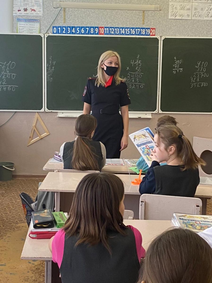 Инспектор по делам несовершеннолетних ЛП на ст.Юдино ст. лейтенант полиции С.А.Смирнова повела беседу с учащимися школы на тему "Железная дорога -зона повышенной опасности. Травматизм"