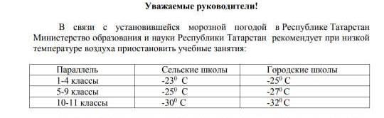 Информация «О проведении занятий в условиях низкой температуры наружного воздуха»