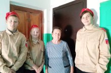 Школьный отряд юнармии совместно сруководителем отряда Юсуповой З.Р. поздравили ветеранов с днем добра и уважения