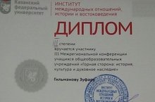 "Тау ягы:тарих, мәдәният һәм рухи мирас" дип исемләнгән укучыларның III төбәкара конференциясендә катнашып, 10 нчы сыйныф укучысы Гильманов Зөфәр өченче дәрәҗә диплом белән бүләкләнде. Котлыйбыз!
