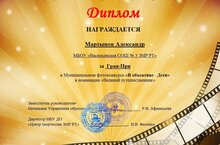 6 класс укучысы Мартынов Александр " Объективта - балалар "муниципаль фотоконкурсында" Бөек сәяхәтче "номинациясендә Гран-при алды. Котлыйбыз!