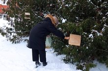 Нам встречать весну.Укучылар мәктәп территориясендә урнаштырылган җимлекләргә җимнәр салдылар. Бәйрәм күчтәнәче!