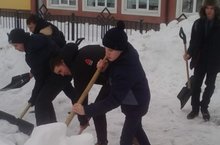 Сегодня ученики нашей школы приняли участие в патриотическом субботнике. Они очищали площадь от снега, где расположен легендарный танк Т-34.