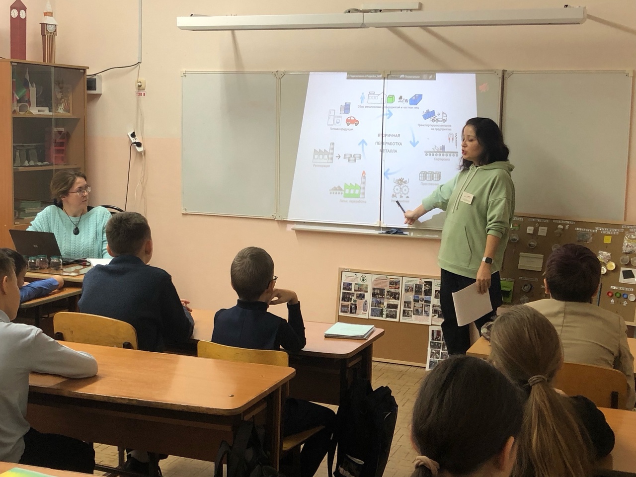 Эковолонтёры рассказывали школьникам о важности раздельного сбора отходов.
