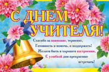 В прекрасный день от всей душиПоздравить Вас позвольте!Желаем всех достичь вершин!Успехов Вам в работе!Счастливых, светлых, ярких дней!Учеников хороших!Пусть новых творческих идейСтановится все больше! -