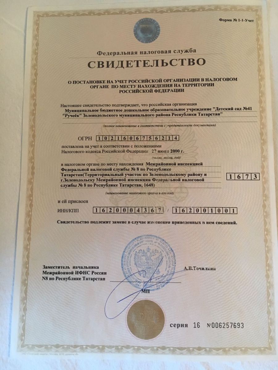 | Короткое название: | МБДОУ "Детский сад №41 "Ручеёк" ЗМР РТ |