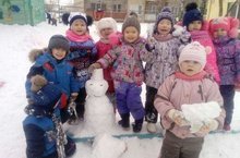 Все дети любят зимние забавы. Кататься с горки, играть в снежки. А самое главное лепить снежные фигуры. Воспитанники средней группы слепили снеговика. Они очень старались.Видно как они рады и довольны своей работой!