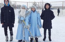 Игра в хоккей на приз Деда Мороза 29.12.2021 Сегодня первый день зимних каникул. Ребята собрались на школьный корт для развлечений. Сегодня Дед Мороз и Снегурочка проводят игру в хоккей на приз Деда Мороза. В данной игре участие приняли 12 ребят.