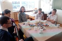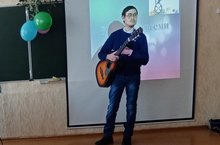 Творческая встреча "Гори, гори свеча" 10.12.2021 2 декабря была организована встреча учащихся 8 класса с местным поэтом, исполнителем собственных песен инвалидом Анатолием Рагузиным. Встреча проходила в дружеской обстановке за чайным столом. Анатолий исполнял свои песни, проводил мастер-класс по обучению игре на гитаре.