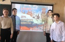 4 ноября в России отмечается День народного единства. Праздник был учрежден Федеральным Законом "О внесении в статью 1 Федерального закона "О днях воинской славы (победных днях) России", подписанным в декабре 2004 года президентом России Владимиром Путиным. Впервые в России этот новый всенародный праздник отмечался 4 ноября 2005 года. Учащиеся начальной школы этот праздник отметили по-своему: на классном часе знакомились с историей праздника, беседовали о героях русской земли; организовали выставку рисунков под названием "Мы едины!".