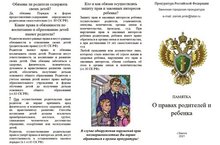 Памятка О правах родителей и ребенка 31.08.2021