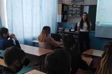 Встреча с выпускниками прошлых лет. Мирсаева Алиса студентка 3 курса КФУ, Нуруллина Назиля студентка 1 курса КГАСУ рассказали о том как сдавали ЕГЭ и какие особенности были при поступлении. Также они очень подробно рассказали о своих университетах, какие есть факультеты, какие нужно сдавать экзамены. Также студентки отметили, что студенческая жизнь это не только учеба, но насыщенные интересные мероприятия, встречи, вечера и мн. другое. Выступления девушек были очень познавательны и поучительны для будущих выпускников школы