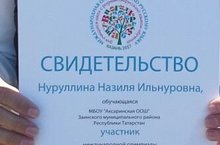 С 3 по 7 июня 2017 года ученица 8 класса Нуруллина Назиля приняла участие на Международной олимпиаде по русскому языку для учащихся школ с родным (нерусским) языком обучения.