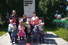 Тэрбияче апа белэн балалар хэйкэлгэ барып чэчэклэр куеп кайттылар.