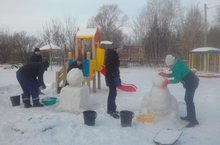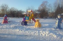 Садик ишек алдын әти-әниләр белән бергә кардан фигуралар белән бизәдек.