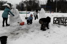 Әниләр белән бергә җыелышып кардан төрле фигуралар ясадык. 17.12.2014