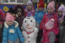Безенең балалар беренче карга бик сөенделәр һәм беренче кар бабайны ясап куйдылар.