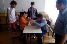 Пришкольный лагерь труда и отдыха "Бригантина" работал по плану: линейка, зарядка, завтрак, трудовой десант. Сегодня определили самого сильного воспитанника лагеря. После долгих соревнований по армрестлингу им оказался Клачев Никита, ученик 7 класса.