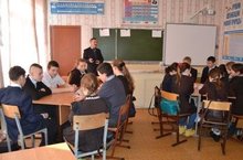 Сегодня состоялась встреча учащихся и родителей с представителями КДН г. Заинска Галлямовой А.Г. и Алексеевым А.В. До сведения родителей и детей еще раз доведены информация о необходимости соблюдения закона №71ЗРТ, о детском телефоне доверия, о соблюдении Устава школы и т.д. Алексей Васильевич рассказал о деятельности военно-патриотических лагерей, охраны правопорядка и пригласил учащихся в летний период в лагерь "Застава" при ДОЛ "Созвездие".